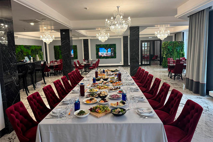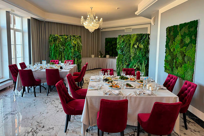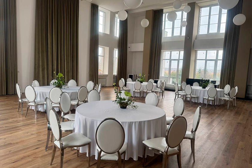 Зал «Айрон» вместимость: до 80 человек. Универсальный зал для банкетов, фуршетов и бизнес-встреч.