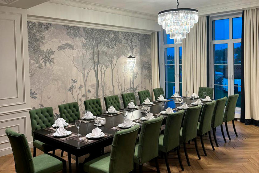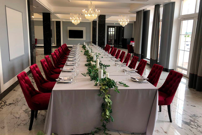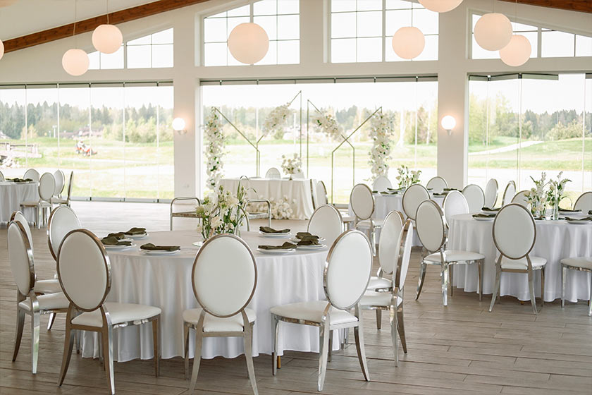 Зал «Панорамная Веранда» вместимость: до 180 человек. Идеально для масштабных банкетов, выпускных и корпоративных мероприятий с завораживающим видом на гольф-поле