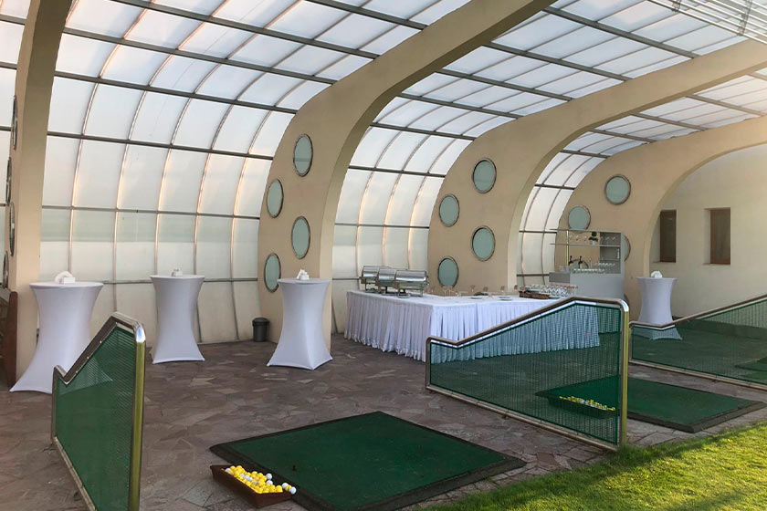 Driving Range (2,5 Га): тренировка дальних ударов на обширном тренировочном поле с 10 открытыми и 10 закрытыми освещенными помостами