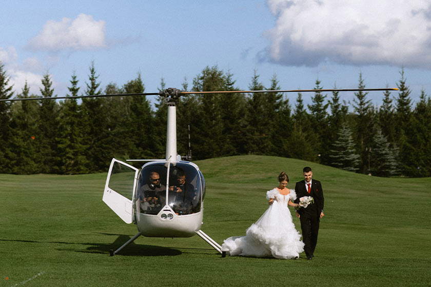 Эксклюзивный сервис: возможность прибытия молодоженов на вертолете прямо на гольф-поле, приехать к месту церемонию на гольф-каре