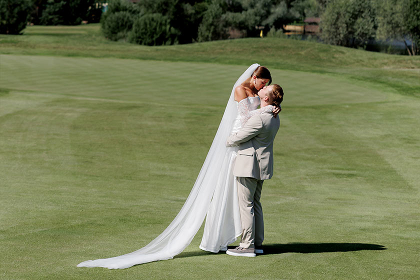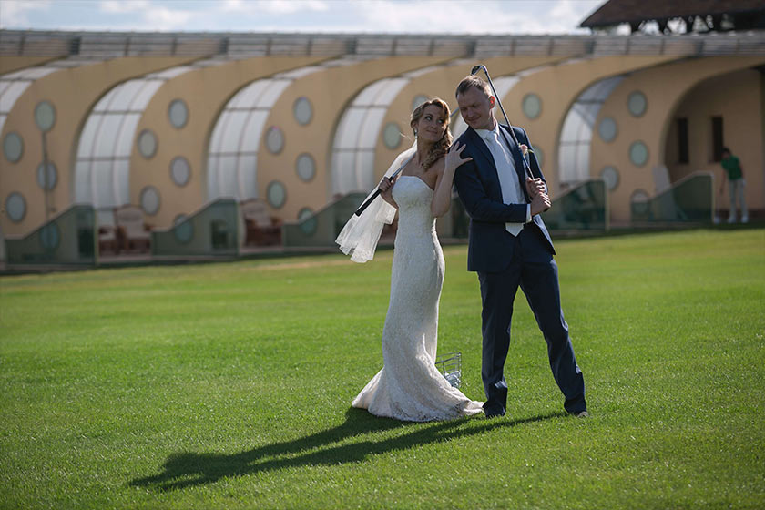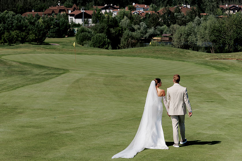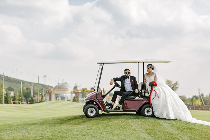 Незабываемые фотосессии на гольф-поле: в стоимость включена аренда гольф-кара с водителем и гольф-инвентарем для создания уникальных свадебных снимков