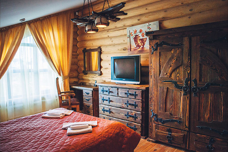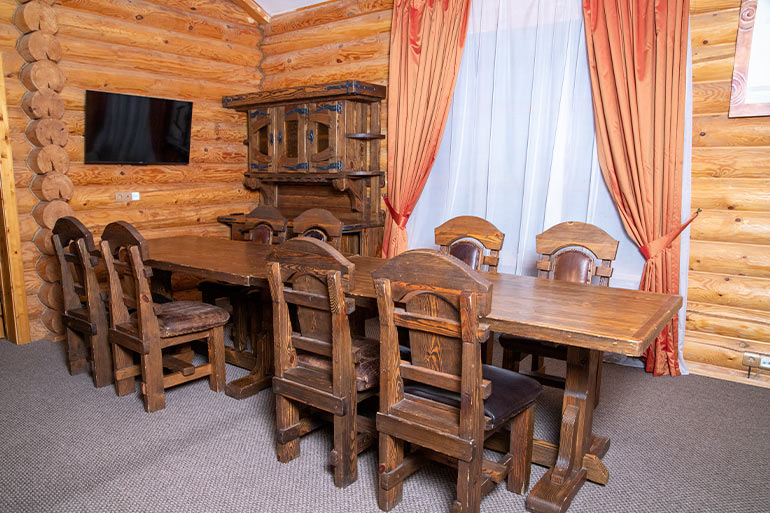 Уютный деревянный коттедж «Шале» расположен в уединенном месте – идеальное пространство для семейного отдыха, празднования Дня рождения или другого торжества с большим количеством человек. На первом этаже вас ждет просторная гостиная и обеденная зона с большим столом на 14 человек и полностью оборудованная кухня – здесь так приятно собираться за ужином после активного дня или большой компанией отметить торжество. Каждая спальня имеет собственный санузел с душевой кабиной, обеспечивая гостям максимум приватности и комфорта.