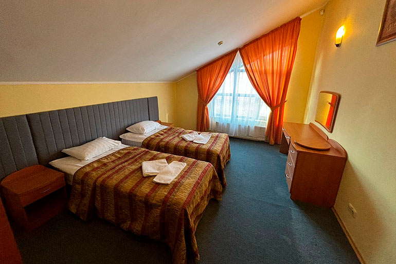 Изолированная спальня на 2 этаже с одной 2-сп.кроватью или двумя кроватями и собственным санузлом